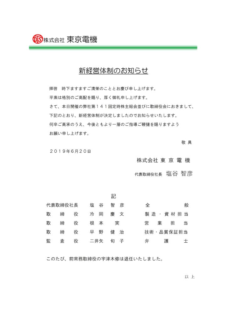 新経営体制のお知らせ
