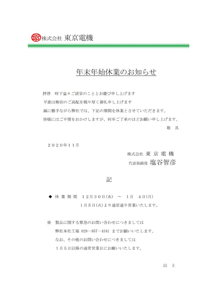 年末年始休業のお知らせ