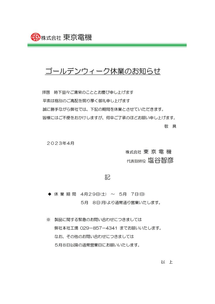 ゴールデンウィーク休業のお知らせ
